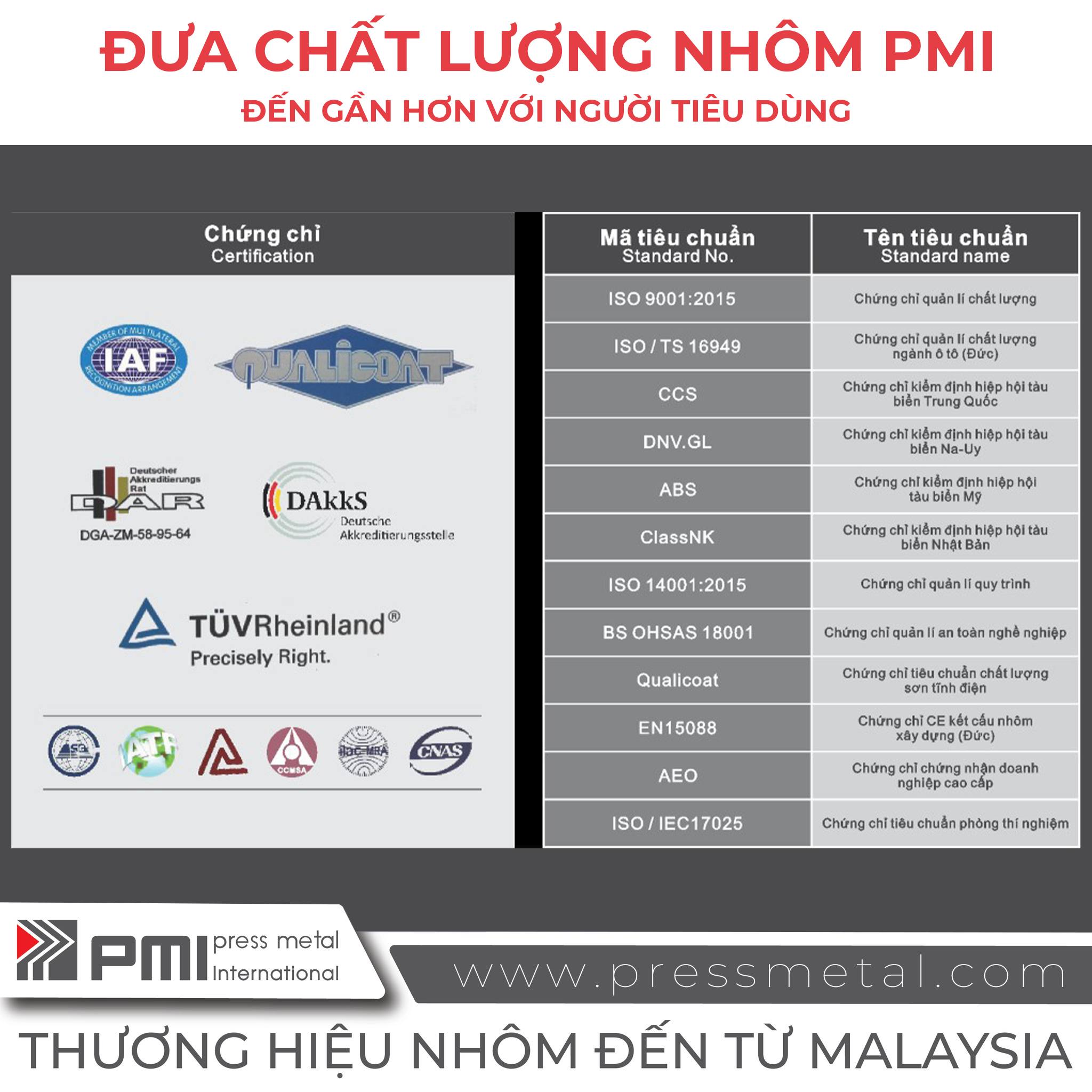 PMI áp dụng quy trình ép đùn – xử lý bề mặt – sơn tĩnh điện – anod hóa tiêu chuẩn, giảm phát thải CO₂ và hạn chế chất độc hại trong sản xuất.